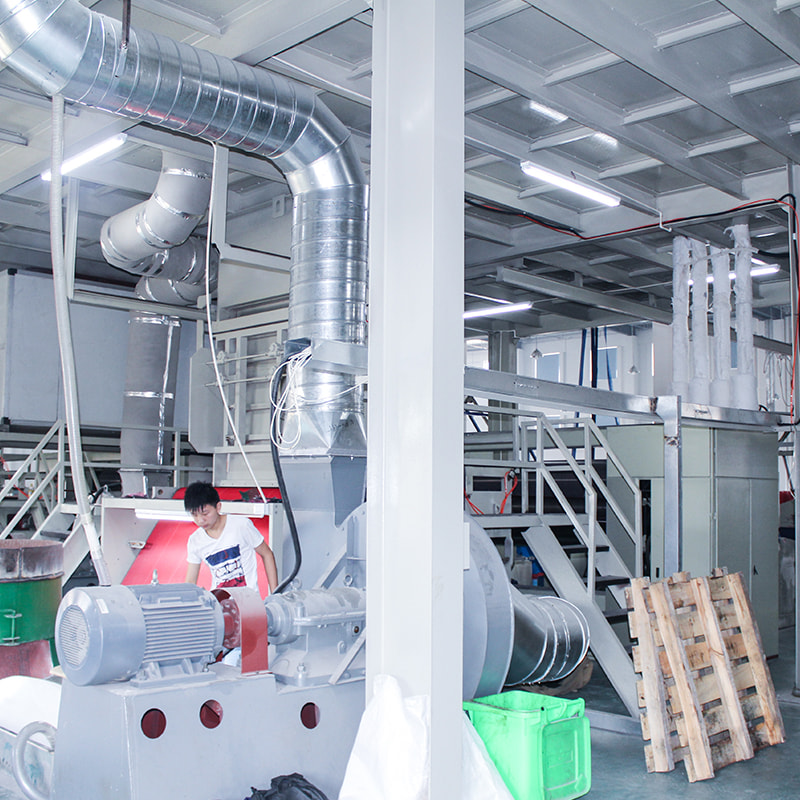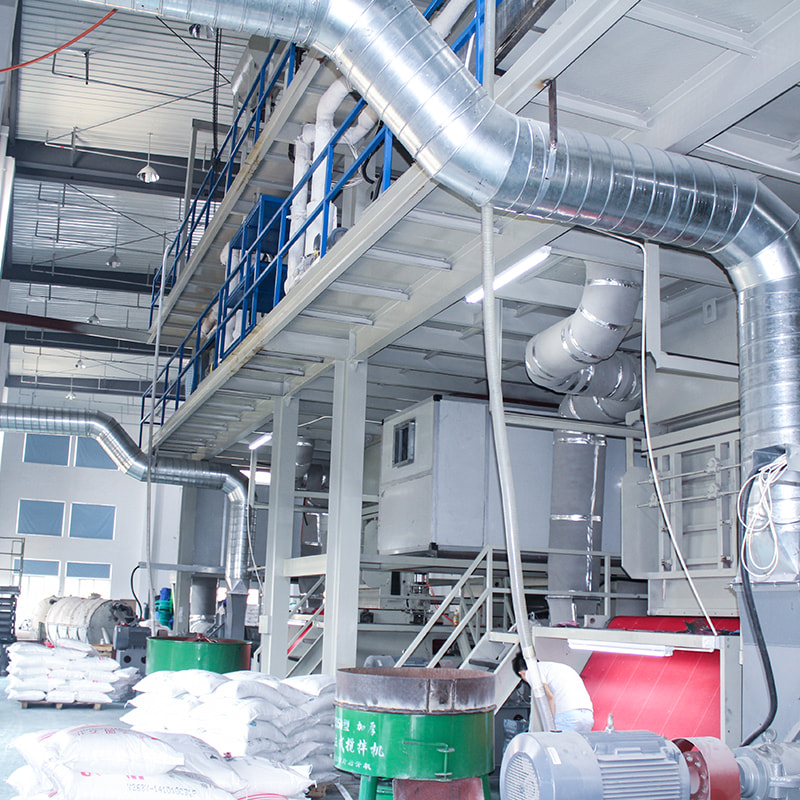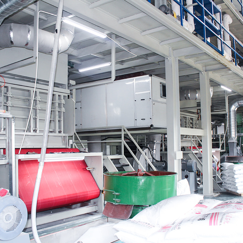 Dodatek do polimeru: Zastrzednice przeciwpożarowe są dodawane do polimeru polipropylenowego albo podczas mieszania granulek, albo bezpośrednio podczas procesu wytłaczania Pojedyncza wiązka S Spunbond Nonvoven Maszyna .