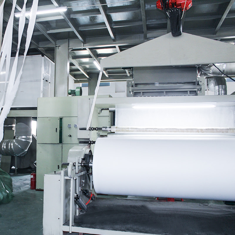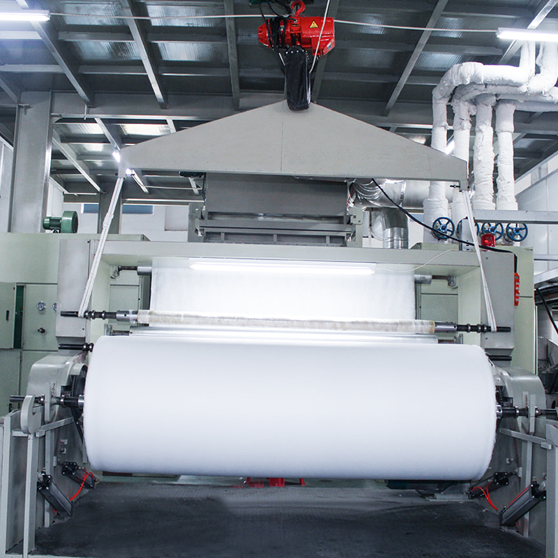 Formacja włókien: podczas wytłaczania i wirowania mieszanka polimerowa zawierająca opóźnienie przeciwpożarowe jest przetwarzane w włókna, tworząc podstawę tkaniny nietopionej.